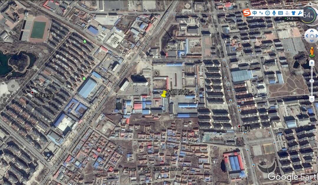 公司北面及東面為井下壓裂大隊(北面廠區為辦公區,東面廠區主要從事車輛檢維修作業),再往北為虹霞路;南面為勝利油田天峰科工貿鋼構有限責任公司(同一廠區內,現已停產),再往南為官屋村;南側圍墻外有一條東西向架空電力線路,桿高6m。西面為黃河路;西北面為魯勝油氣公司辦公室。 |