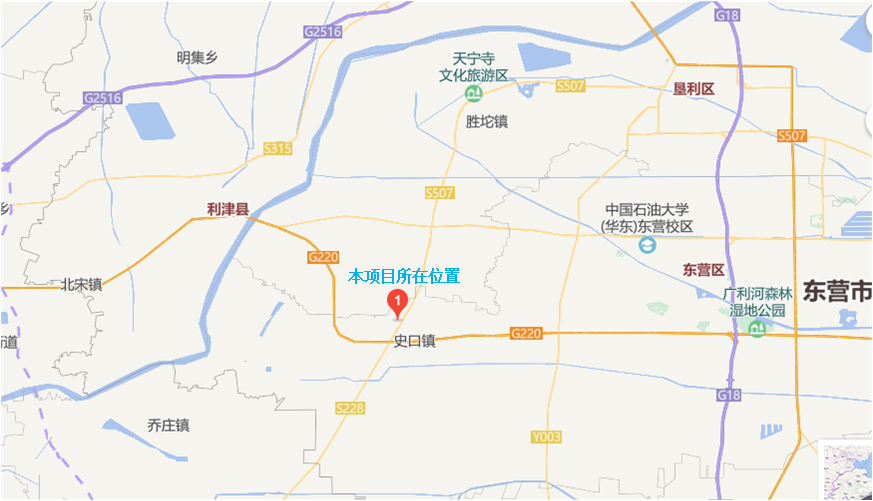 廠區北面為大趙村、小趙村等以及萬海燃氣、稠油末站油庫,海科化工、鑫博化工、萬金石化、萬通公司;東臨郝純路;南側為東營益盛、一鵬能源公司、神馳化工、政興危化品專用停車場、博瑞石化等;西側為中亞化工、東營寶莫。 |
