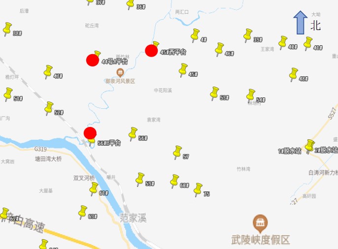 焦頁56號中部氣層開發(fā)調(diào)整井組利用老平臺2座,新建平臺1座,鉆井9口,站場處于山地中,周圍主要為山地林區(qū),周邊分布有散居民房。 |